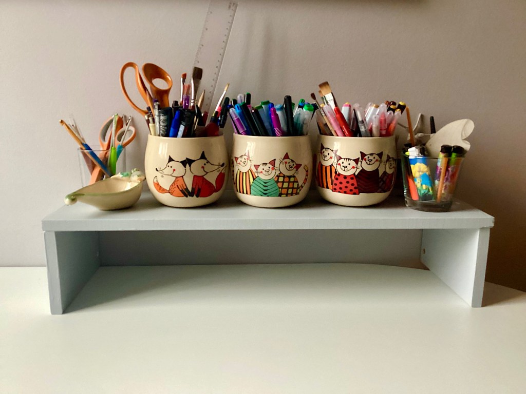 Az asztal és környéke lepucolásával persze annyit lehet csak nyerni, hogy átmenetileg kevesebb lesz a dzsuva, de hát összességében ez nem sokat segít rajtam, mert eddig ezen az asztalon tengődtek a horgolókellékek meg varrókellékek meg hímzőkellékek plusz még pár akcidentális szarság, az elmúlt hetekben viszont ezekhez bejöttek a rajzkellékek is, és innentől már lehetetlenné vált a helyzet. Na de hát ezért lenni nekem barkácskellék. (Ők hálistennek kint laknak a folyosón ebben a szekrényben, mellesleg ott is ideje van újabb merényleteknek, jahahahaj.)