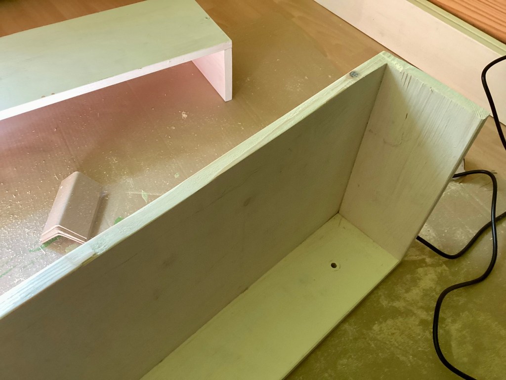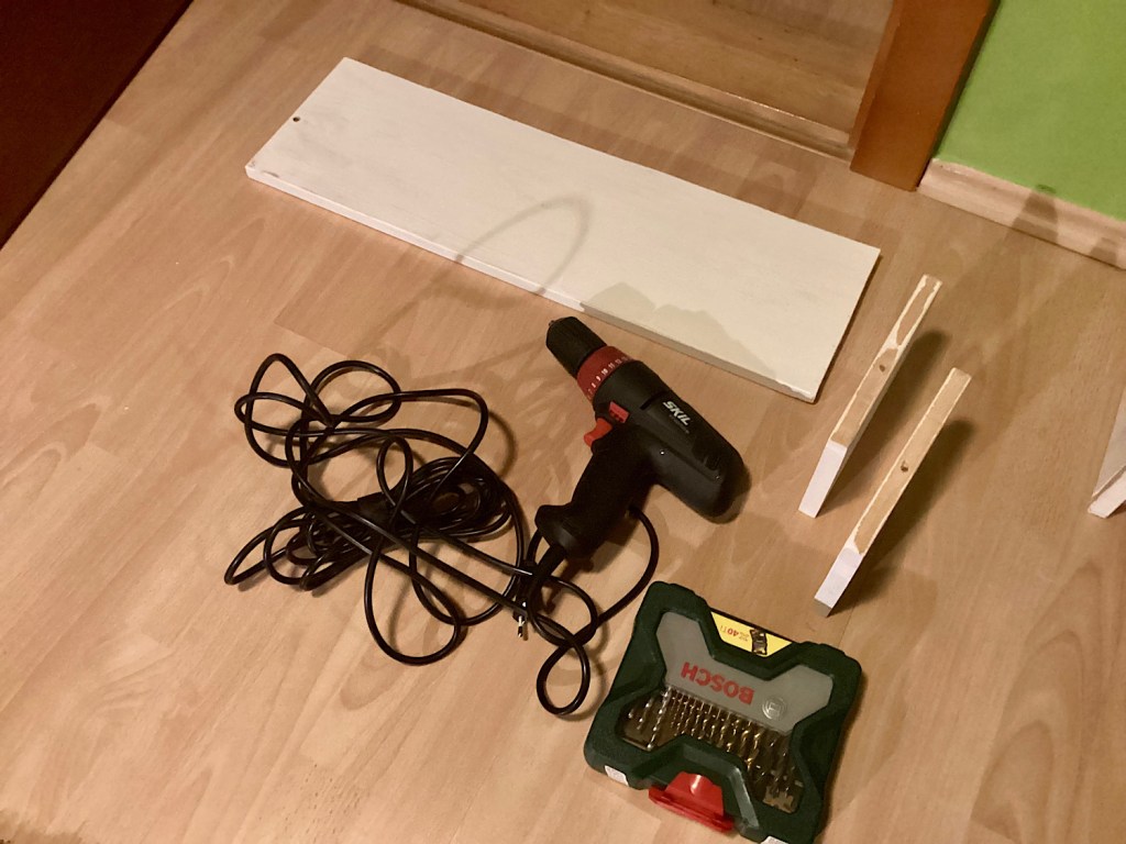 Lőn. Miután alaposan lecsutakoltam a polcot. Amikor összeszereltem, csiszoltam egy sort a megviseltebb felületeken, majd festés!