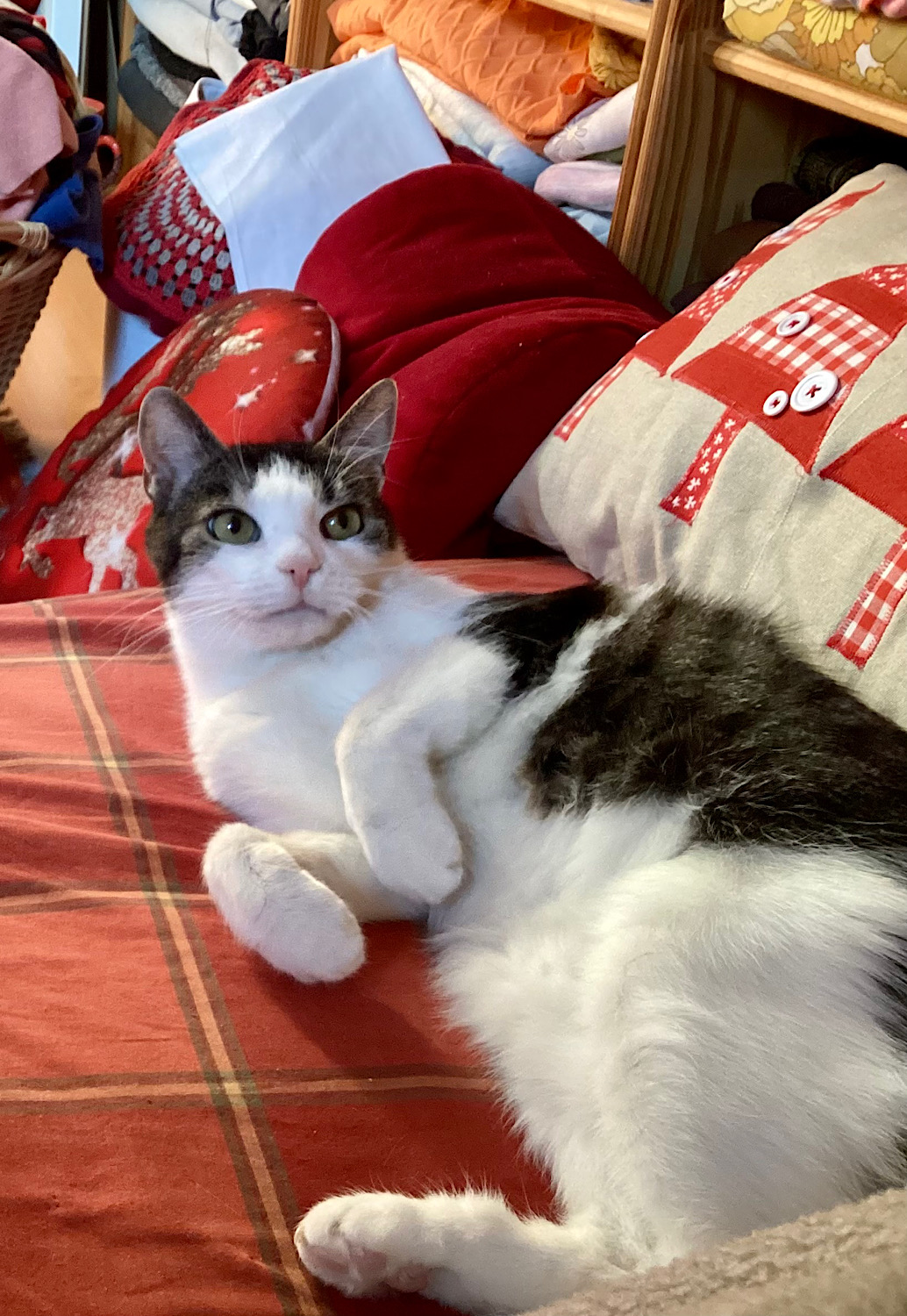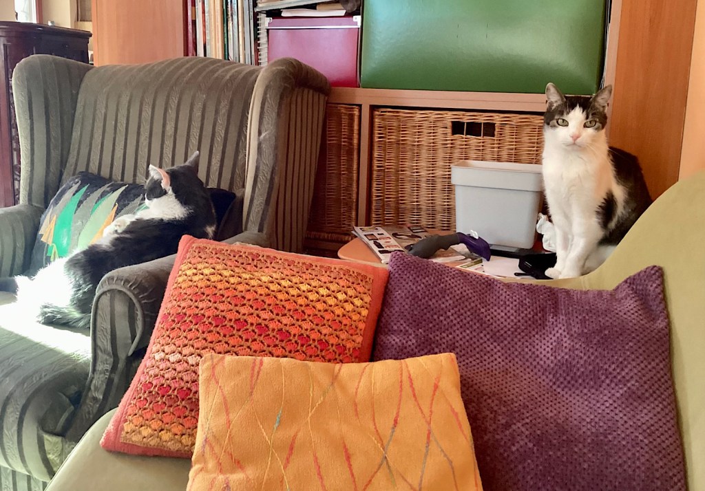bár velem szemben továbbra is erősen gyanakvó, mert még mindig én passzírozom bele a gyógyszert, de azért hajlandó odajönni hozzám és simogattatni magát, amennyiben én ülök vagy heverek. Megpróbálok minél többet ülni vagy heverni.