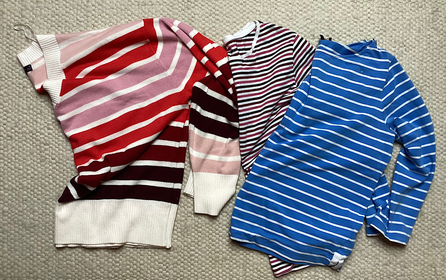 Meglepő módon három csíkos cuccot is összevadásztam, egy vékony pulcsit, egy leginkább itthonficergéshez jó pólót meg ezt a kéket is, ni.