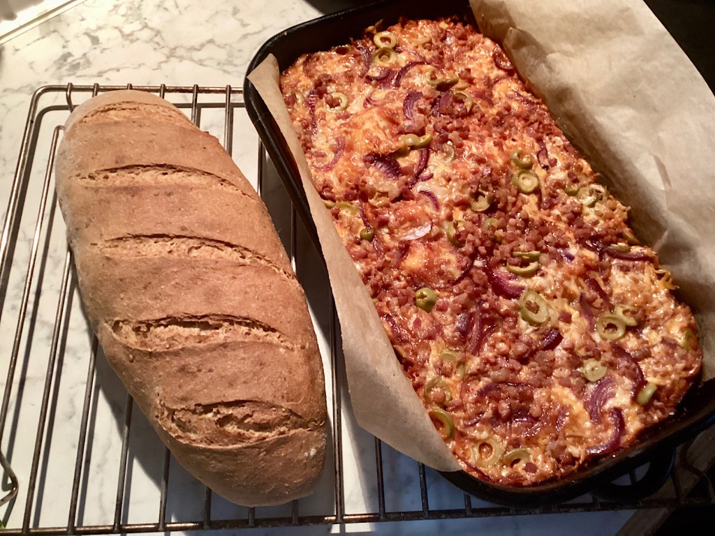 valamint sütöttem neki útipizzát és útikenyeret.