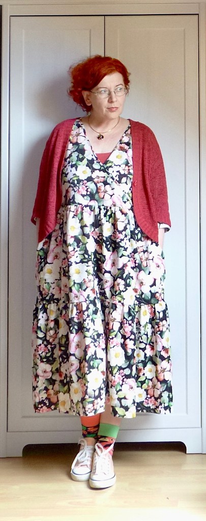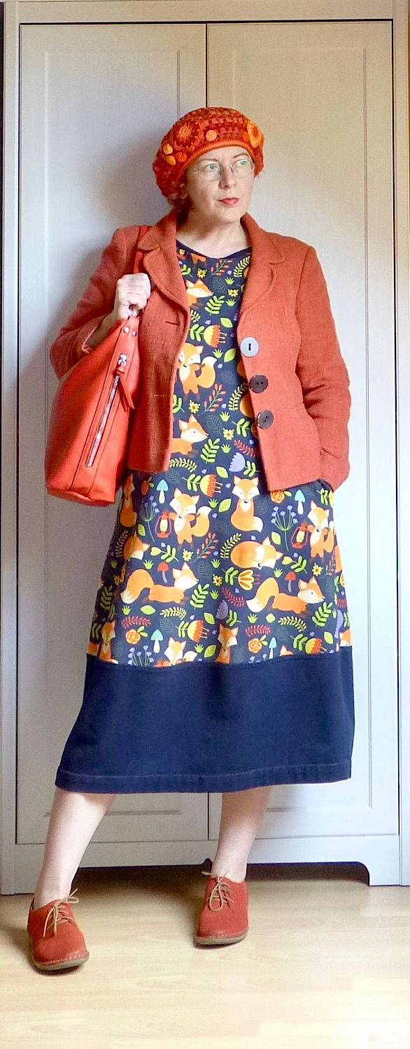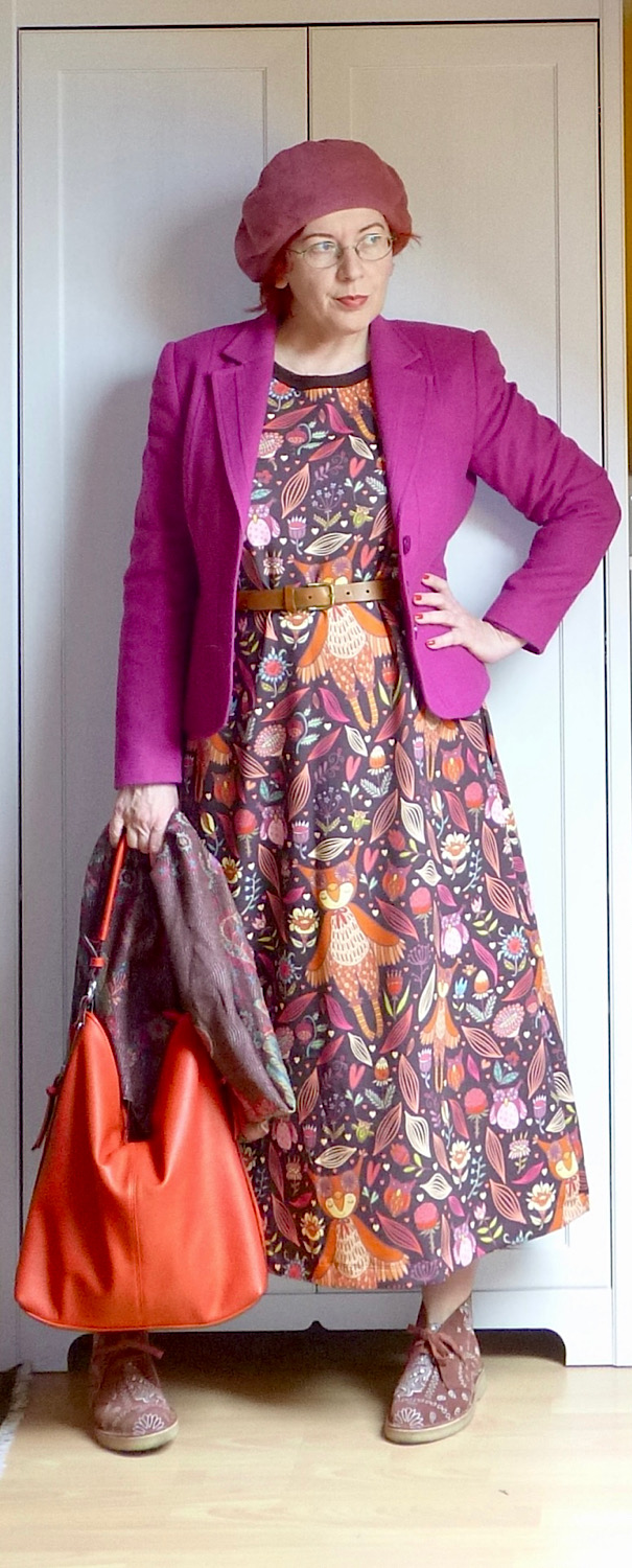 Normál körülmények között itt most azt kéne mondanom, hogy “tadáá!”, és kis örömtáncot járni azért, mert végre rászántam magam belenyisszantani a bagolyhárpiás anyagba, desőt megvarrni készre belőle egy ruhát. Mivel nem vannak normál körülmények (az orrom már nem folyik, de még mindig bamba vagyok és nyűgös), “tadáá!” helyett csak ezt tudom nyújtani: