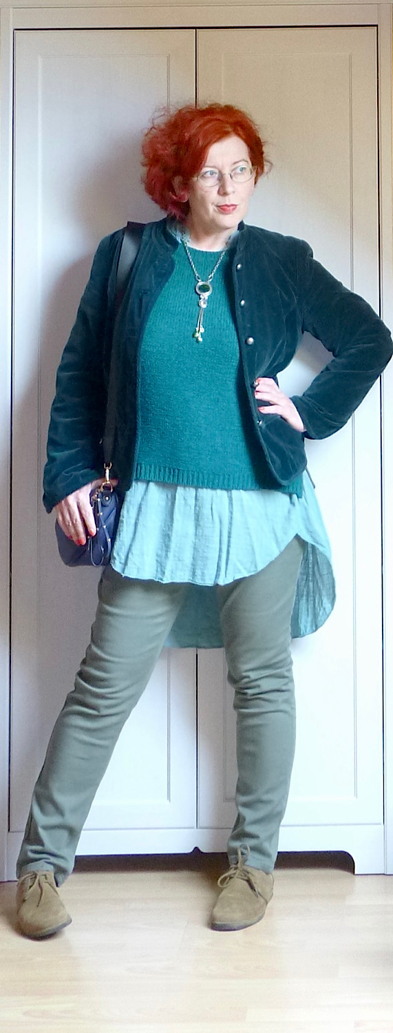 A vállmegoldás nem a legnagyobb sikereim egyike, és pontosan tudom ugyan, mit kéne kijavítanom rajta, de a bányába ez is jó lesz. Pláne hogy semmi más ötletem nincs, mit vehetnék fel máma, hiába ráztam gatyába tavaszra a szekrényt.