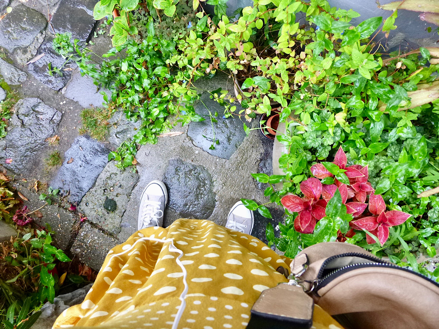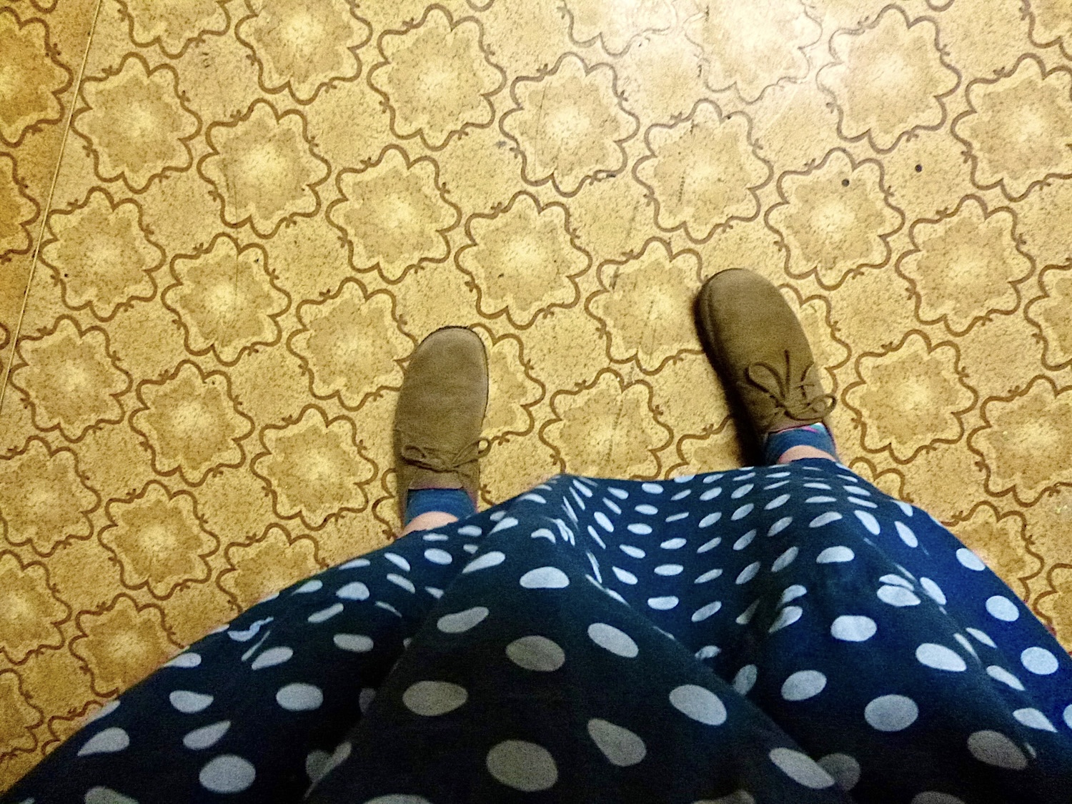 Piacra menni tehénkergető ruhában, alatta egy plusz szoknyával, felemás zokniban és felcsüngüzve, mert miért ne. Jah, ez vagyok én. A pózt nem tudom megmagyarázni, de az enyhén mániás tekintet amiatt van, mert a RK ma hazajön, és én a) nem tudom, mi a nyimnyámot adjak neki vacsorára, b) el kell mosogatni mindazt, amit itt-nem-léte alatt szolidan besuhintottam a mosogatóba. Esetleg ott hagytam a konyhapulton.