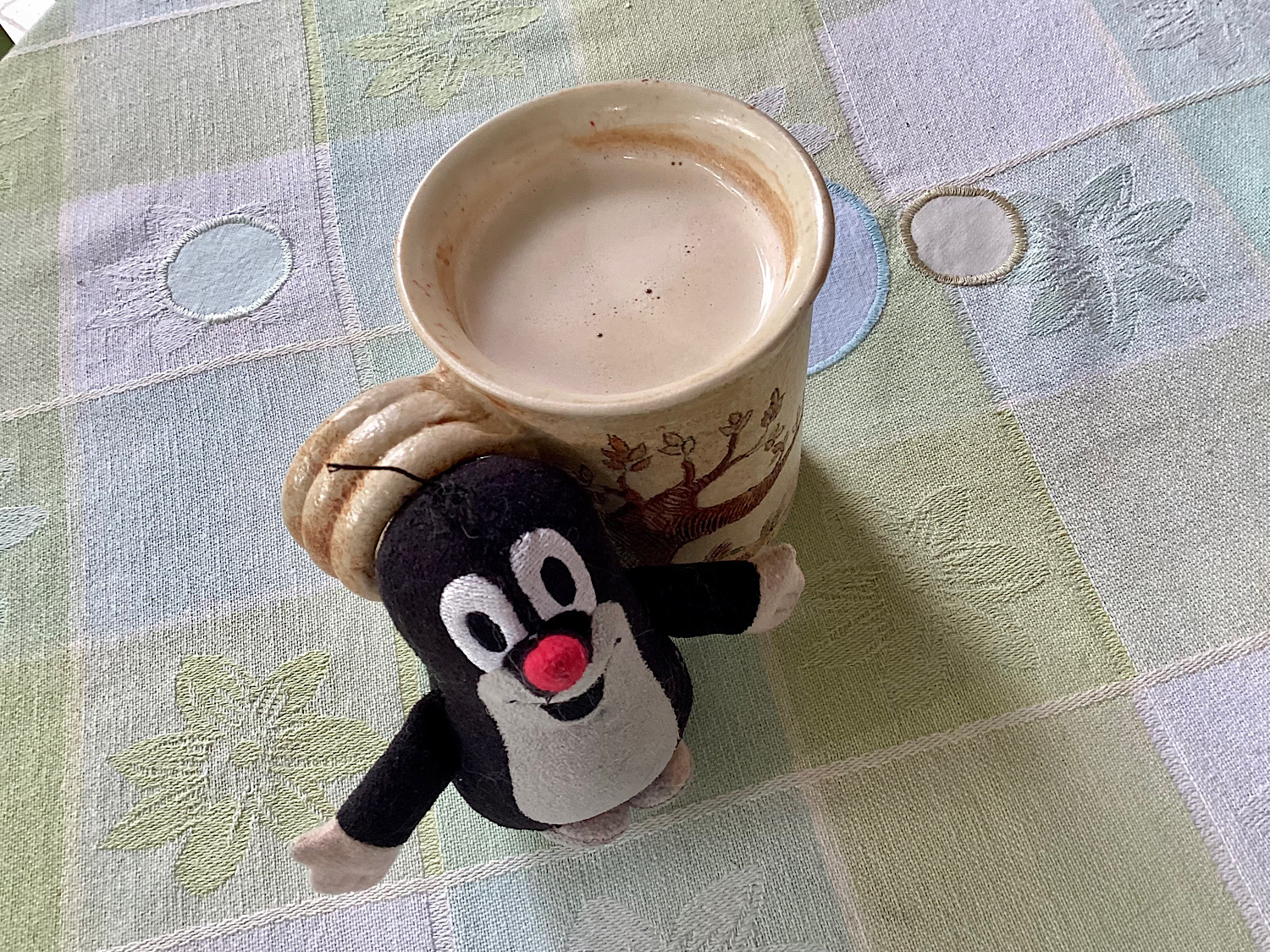 A mindennapok apró örömei: város eső után, horgolófonalak, kopasz barackok, szőrös lakótársam csiriz üzemmódban, a színes véletlenek összjátékai na meg Professor Krtek, akit úgy itthon felejtettek, mint a huzat, és nekem kellett meginvitálnom egy kávéra, hogy ne duzzogjon. Galéria!