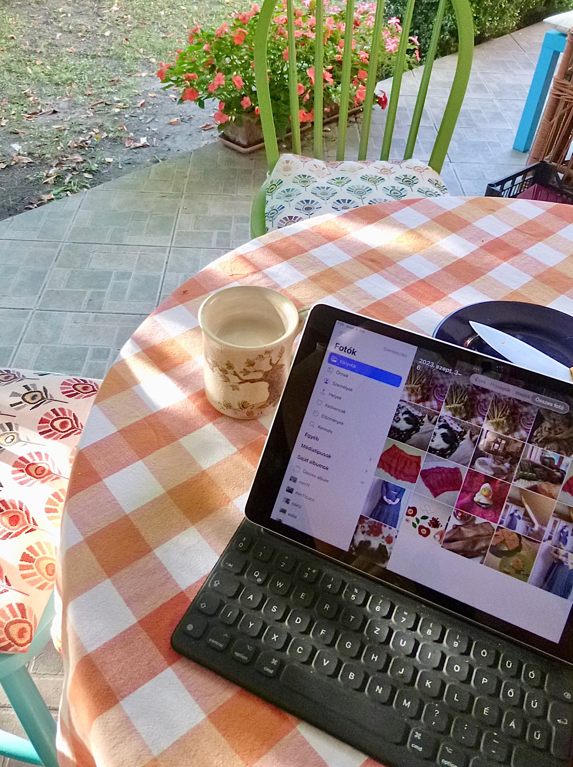 Mivel délután afféle szordínós családi eszemiszom volt a szomszédban, valamikor három óra tájt így nézett ki a teraszon az asztalom, ni: