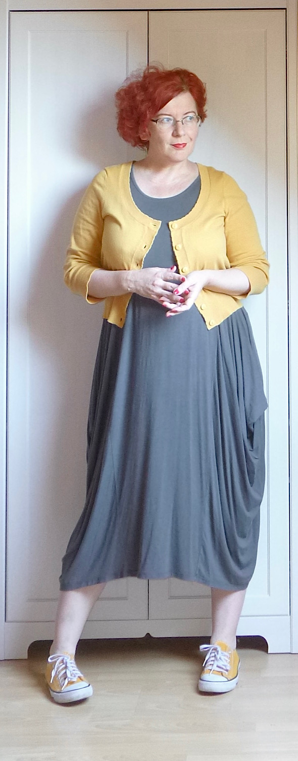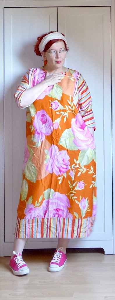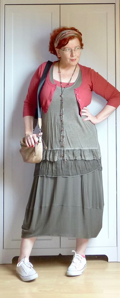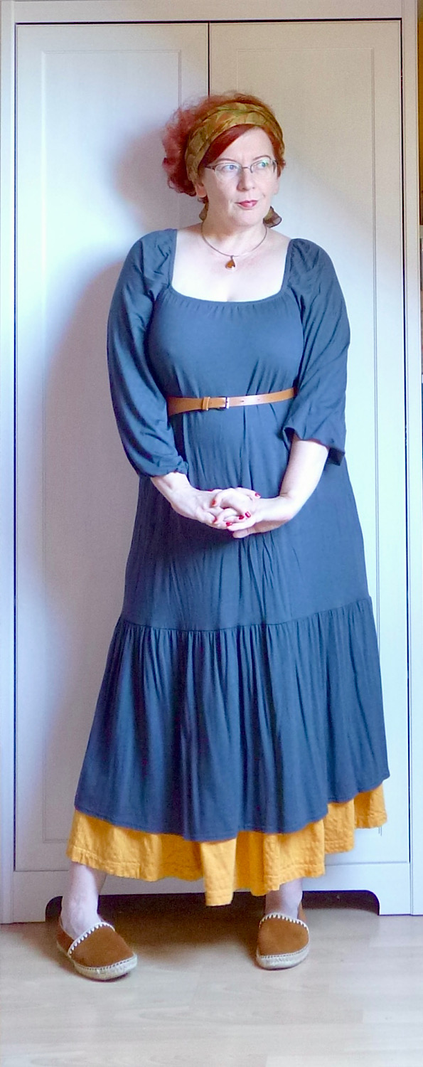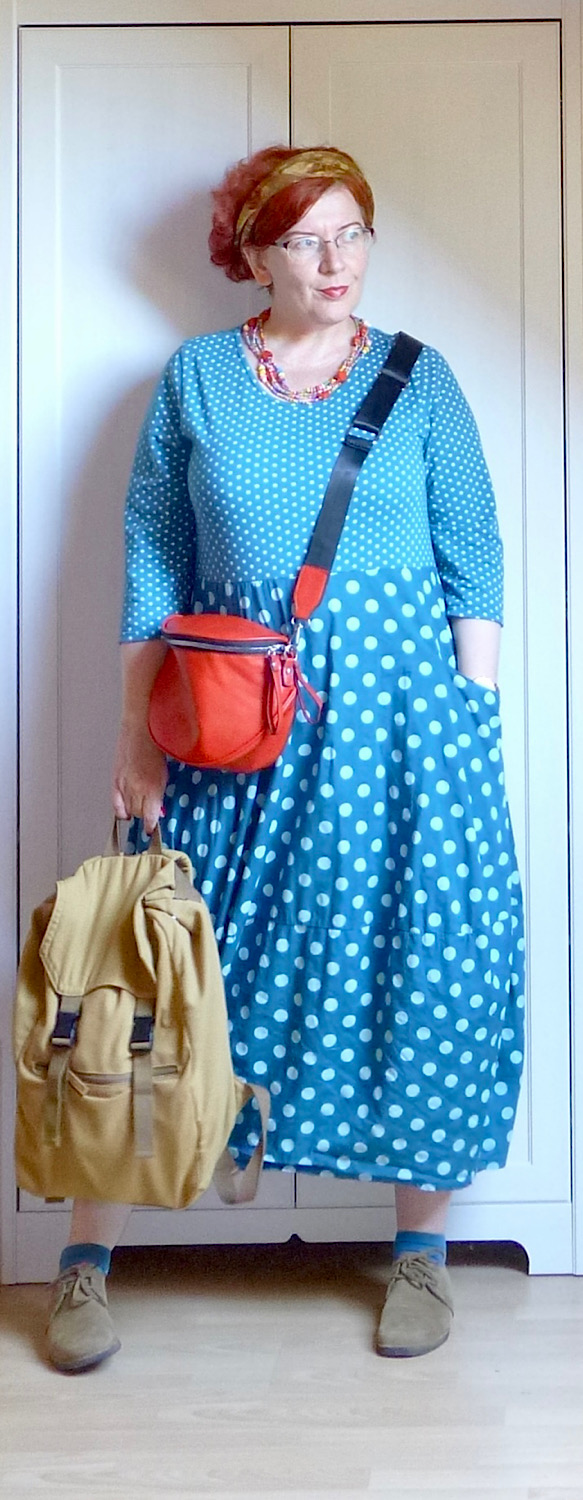 Piacra menni tehénkergető ruhában, alatta egy plusz szoknyával, felemás zokniban és felcsüngüzve, mert miért ne. Jah, ez vagyok én. A pózt nem tudom megmagyarázni, de az enyhén mániás tekintet amiatt van, mert a RK ma hazajön, és én a) nem tudom, mi a nyimnyámot adjak neki vacsorára, b) el kell mosogatni mindazt, amit itt-nem-léte alatt szolidan besuhintottam a mosogatóba. Esetleg ott hagytam a konyhapulton.