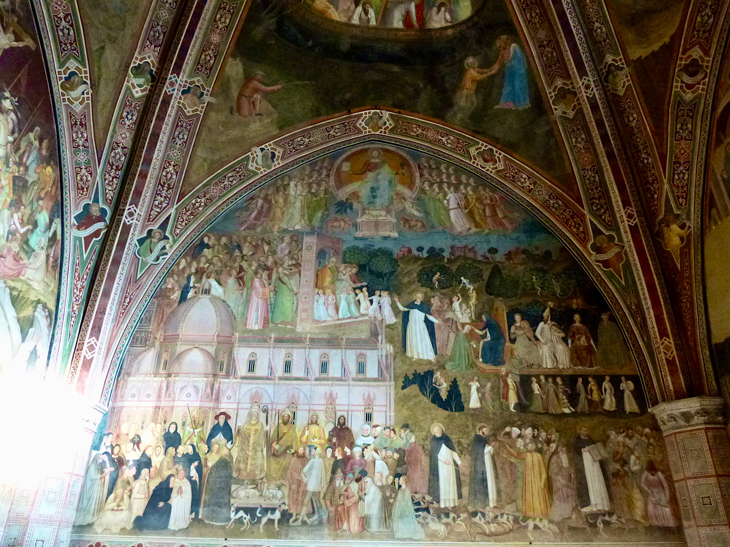 És akkor még ott van a múzeum, ahol nincs sok holmi ugyan, de akkor is, frissen restaurált Uccello-freskók meg ereklyetartó faszobrok meg hímzett miseruhák és aprólékosan szőtt oltárterítők vannak csak úgy mellékesen odasuvasztva, mert a templomban már nem fértek el.