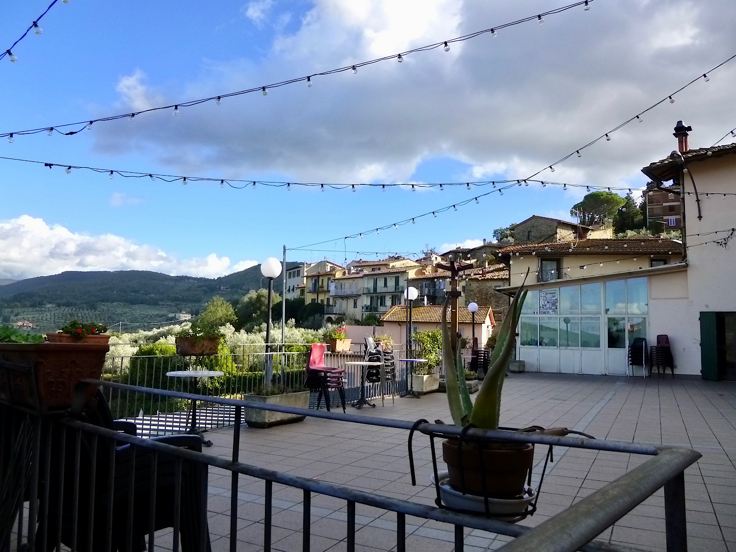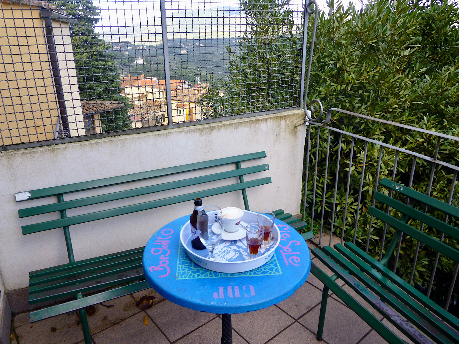 A Fiesoléba járó turisták általában azon rínak, milyen piszok drága a falu, na hát ehhez képest mi azért a tálcányi cuccért (két pohár Amaro Montenegro nevű fűszernövényes körömlakk, amit a RK mindenáron ki akart próbálni egyszer, egy cappuccino és egy kis sör) kevesebb mint 10 eurót fizettünk. A RK amúgy azért tudott erről a helyről, mert október elején abban a két hétben, amikor még nem állt rendelkezésre a La Casina, és én otthon ettem a kefét, ő itt lakott tíz háznyi távolságban.