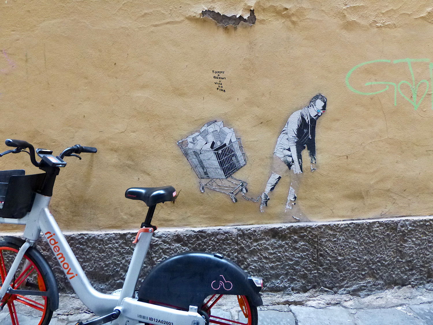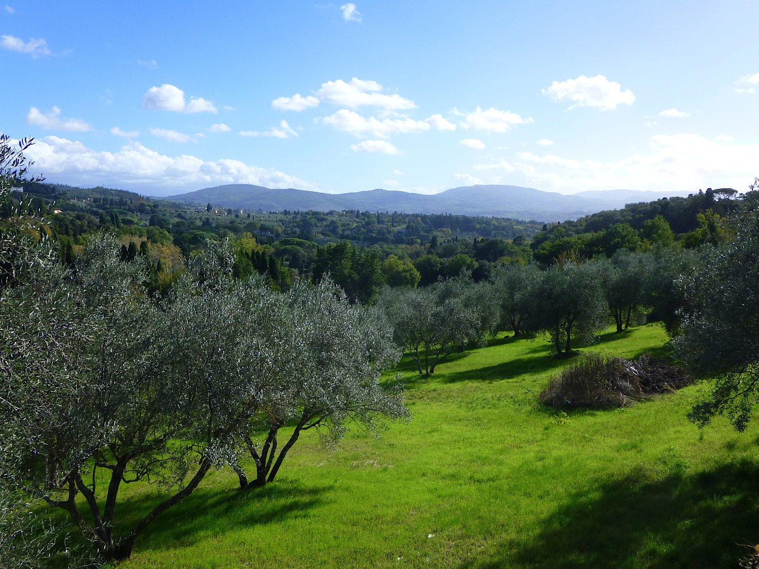 Mert azt ugye nem gondoltátok, hogy autóval megyünk, hehh. Az erdőszél, ahol lakunk, csak néhány pökésnyire van Fiesolétól, pedig közben még van egy San Domenico nevű település is, de mindezek többé-kevésbé össze lettek nőve, és nehéz megállapítani, hol ér véget az egyik, aztán hol kezdődik a másik. Leginkább ahhoz tudnám hasonlítani, ahogyan a Dunakanyarban nőttek egymásra a települések, például Szentendre, Leányfalu és Tahitótfalu, amelyek esetében ugyan vannak településtáblák, de ezek csak igen hozzávetőleges információt adnak. Na ugyanez van itt pepitában, csak olajfaligetekkel és 280 méteres szintkülönbséggel, ami nem hangzik soknak, de speciel egy 18 fokos emelkedőt is abszolváltunk tegnap, és nem ez a legdurvább a környéken, van 22 fokos is.