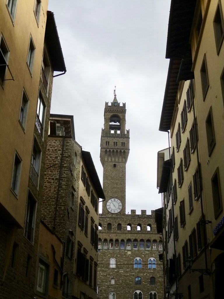 Az utolsó képen ott lent a toronnyal San Domenico, ott fent a dombon meg Fiesole, szóval ennyire össze vannak nőve. Ha belenagyítotok a képbe, a jobboldali tuja fölött van egy torony, az a Fiesole főterén lévő templomé, ez itt ni.