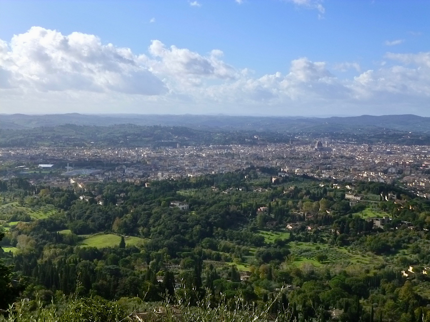 A nagyobbik fotón jobbra a dóm, balra meg a Fiorentina-stadion segít a tájolásban, és mi valahol a kép balszélén túl lakunk egy kicsivel. Onnan jöttünk fel idáig, yeah.