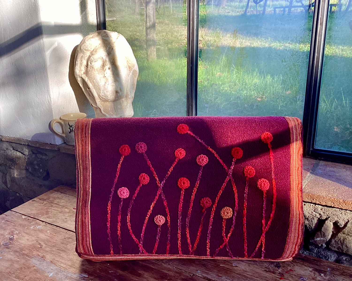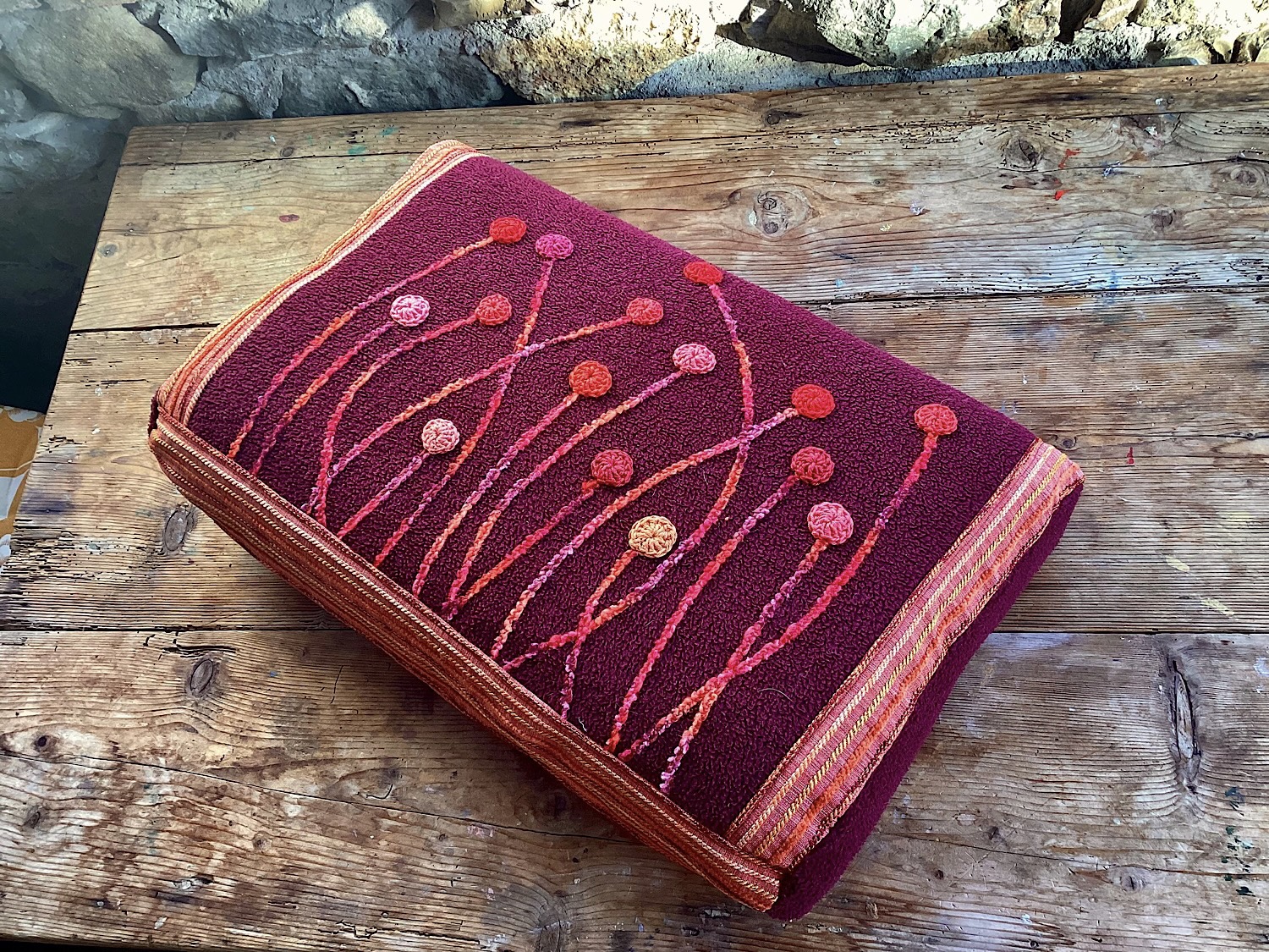 Egyúttal jó beavatás volt Matildának is, hogy kábé mikre számíthat tőlem a jövőben. (Nem sok jóra, ezt már sejtheti.) A többiekben amúgy a Szokásos Eljárást követtük: kézzel felvarrt rozetták a kimeríthetetlen készletből, effektfonalak cikcakkal odafogva, alapanyagként a RK elvénült házikabátja (karácsonyra újat fog kapni tőlem) meg a nagy őszvégi turkálós leárazáson vett bútorszövet-darab, mert velem az ilyenek szembejönnek még Firenzében is, hihi.