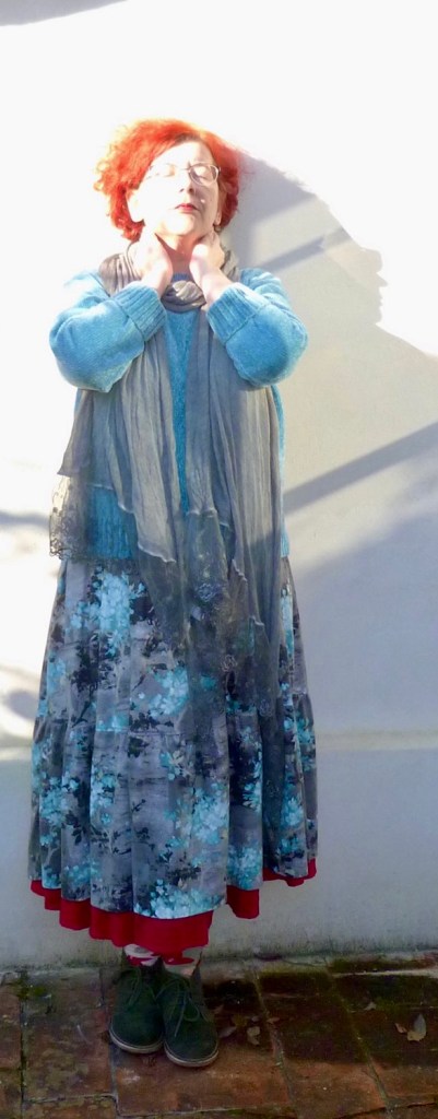 Én továbbra is kehelek és a takonymanókkal harcolok, úgyhogy ugyan ma felőtöztem meg kipintyöltem magam nektek, de ez marhára nem látszik a fotón. Nem látszik azon a fotón semmise. Amikor a szemem se tudom kinyitni, annyira tűz a nap, ez lesz belőle.
