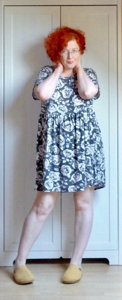 Az már ezen a ponton magától értetődő volt, hogy az ujjakat visszahajtom háromnegyedesre, aztán begumizom. Meg az is, hogy a nyakkivágást muszáj decensebbre szabnom, mert másként állandóan azt kell igazgatnom, hogy ne fittyenjen ki belőle a melltartó pántja. Az engem általában átkozott módon zavar.