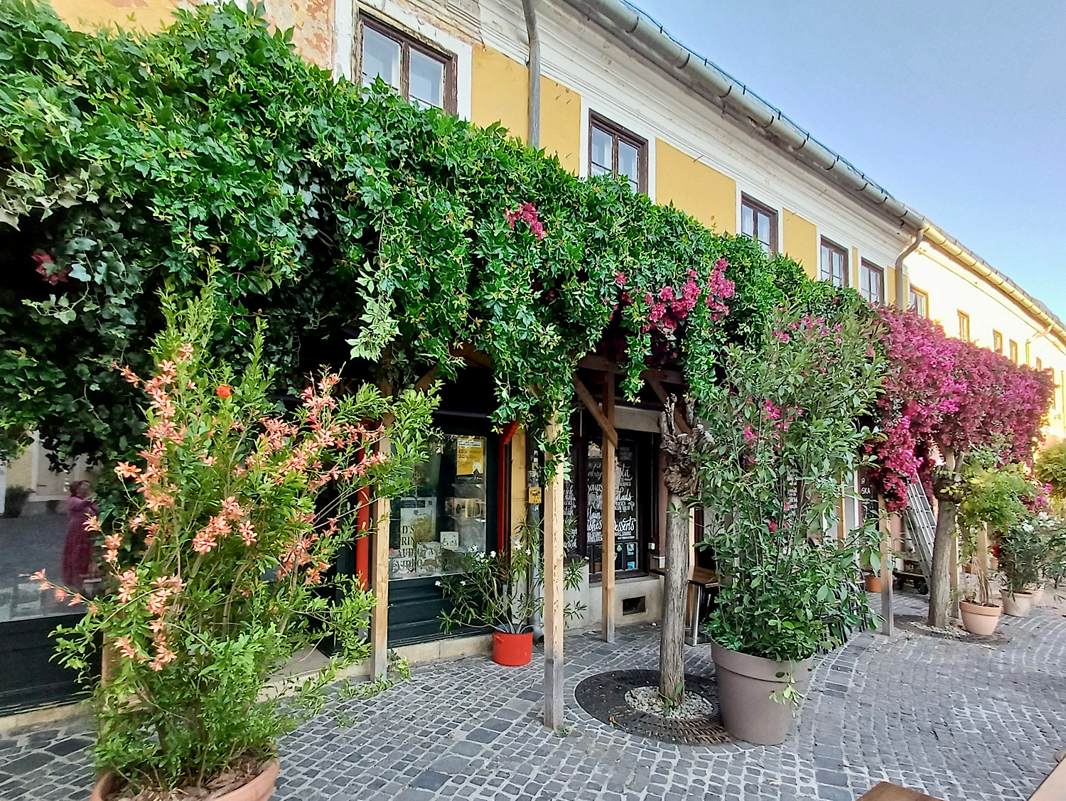 A filmről persze nem tudunk semmit, de azt hiszem, elég jó helyen tapogatózhatok a Hallmark csatorna környékén, nem egzisztencialista drámát forgatnak itt a látványból ítélve, hanem valami limonádét. A turisták valószínűleg enyhén összezavarodva távoznak, a helyieknek viszont szeme sem rebben. Volt ez a város Montmartre is – meg tudom mutatni azt a sikátort, ahol a gyilkos, akit Maigret el akart kapni, háromszor is végigkergette a potenciális áldozatot. Mert a valóságban túl rövid volt a sikátor, azér.