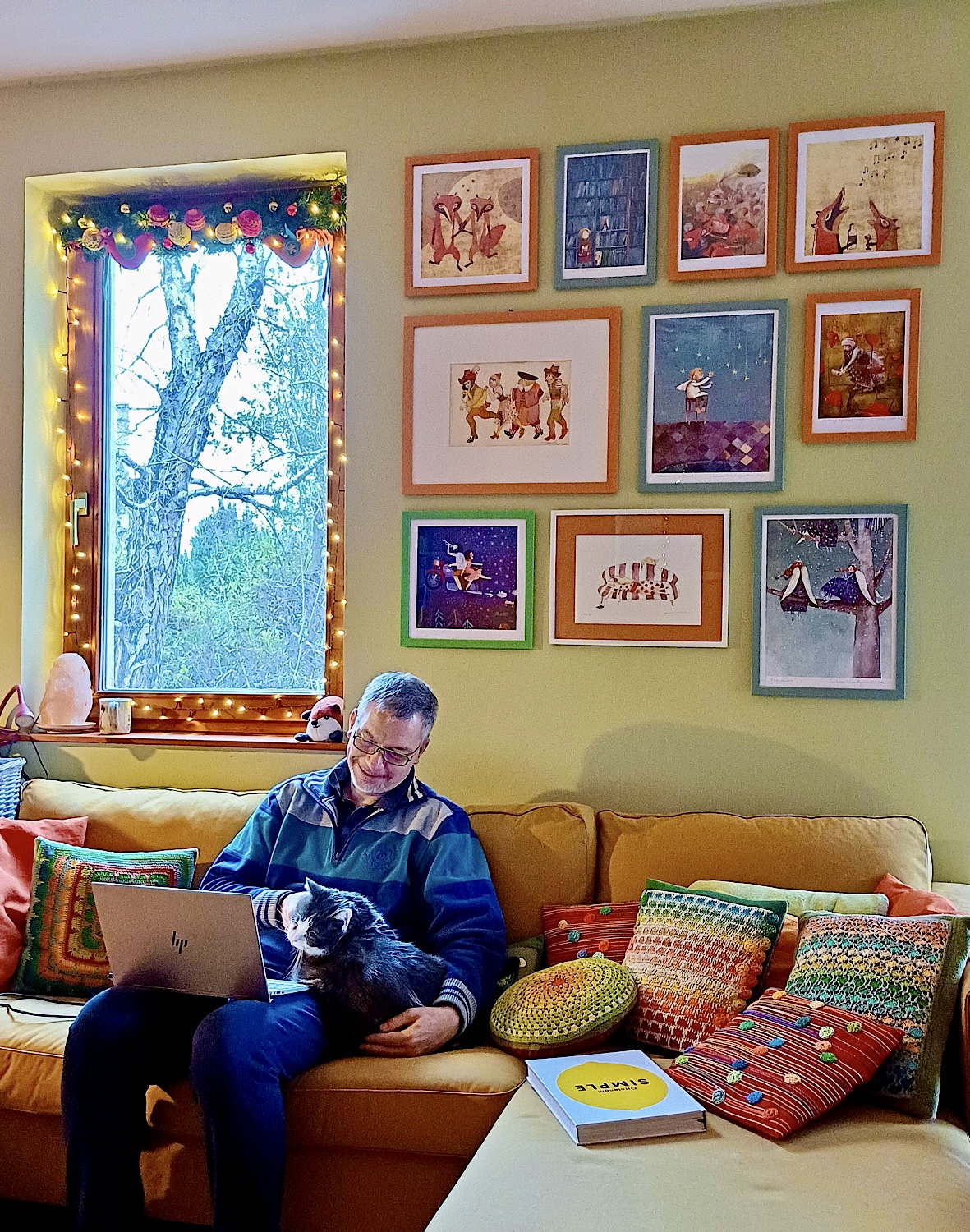 A művészetek iránt érdeklődők számára: a csávók fölötti falon van most három Szimonidész Hajnalka nyomat, két Szegedi Katalin, három Schall Eszter és egy Agócs Írisz, valamint egy eredeti Róna Emmy rajz, amit az Igazgyöngy Alapítvány egyik árverésén szereztem. A többi a Parti Medvéből és a Newsee Store-ból van, amik mindketten itt lakoznak Szentendrén.