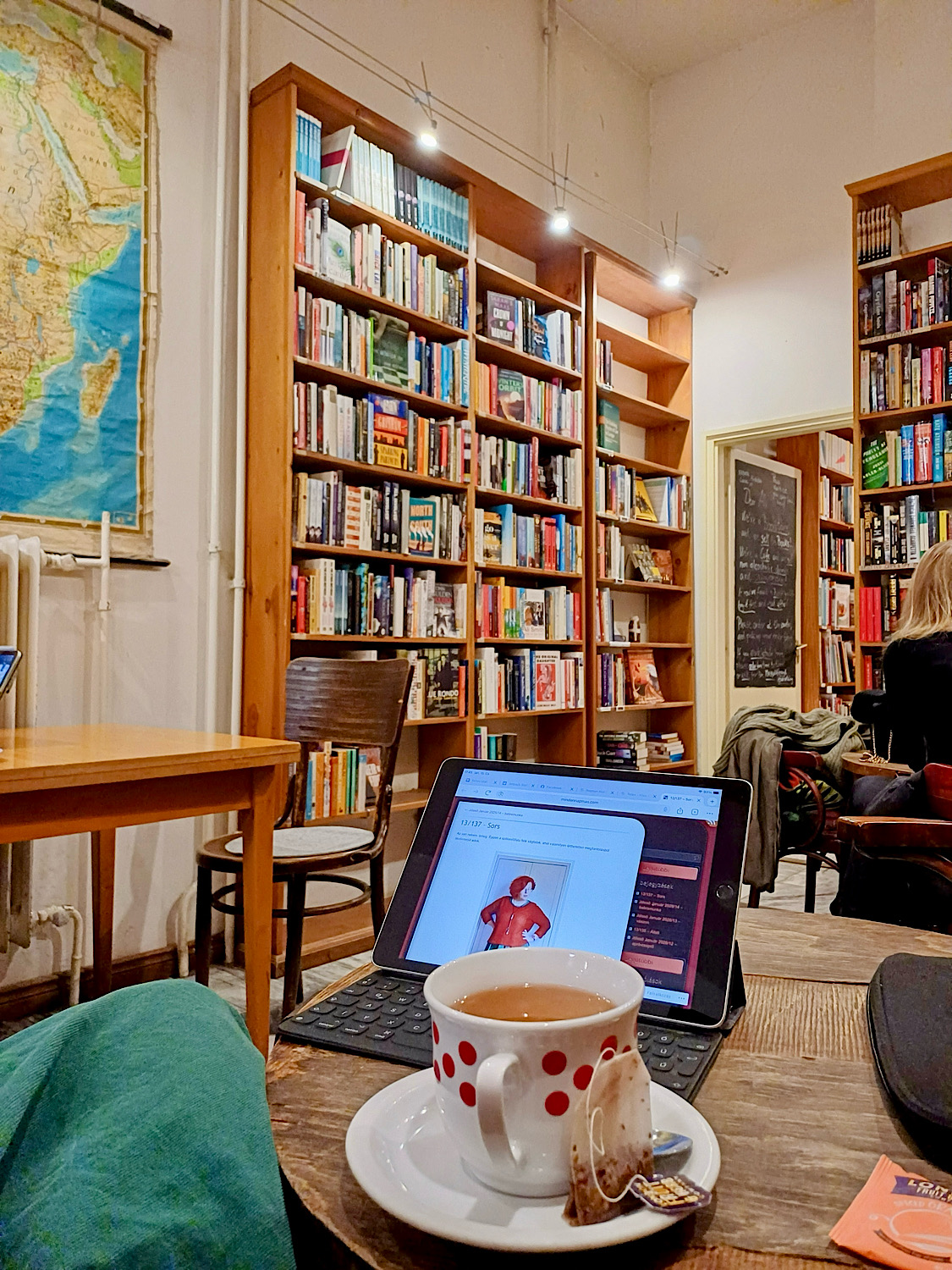 Oké, valójában csésze, de kicsire nem adunk. Egy narancsos-fahéjas tea még a kiállítás-megnyitó előtt a Massolitban.