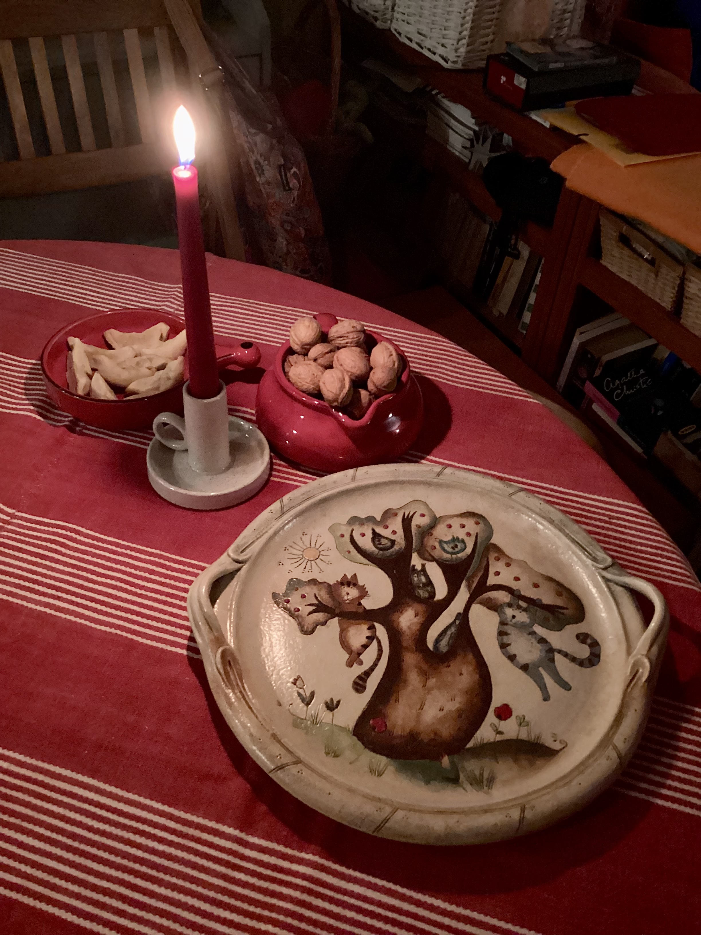 Évekig ríttam, hogy a tancsitancsi meg a vizsgáztatás miatt sosincs időm rendesen rákészülni az adventre meg a karácsonyra – nos, ez megint az az eset, amikor akartad, akartad, jól megkaptad. Tegnap bekörmöltem a neptunba az összes aláírást és gyakorlati jegyet, ellenőriztem és élesítettem az online vizsgákhoz a dolgozatokat, most meg itt állok tanácstalanul-izgatottan-szomorúan-reménykedve. Szó se róla, nagyon tanulságos és érdekes experimentum ez is, de olyan plusz energiát igényel, amire nem volt szükség, amikor nem volt lehetőség arra a lelazulásra, ami óhatatlanul magával hozza a terveken túl a tépelődnivalókat is. Amikor egy normális félév normális végével küzdök, olyan automatizmusok működtetnek, amelyeket már jól ismerek. Mint egy elnyűtt, jó meleg kabát. Mindig azért morogsz, hogy szúr a gallérján a szövet, és túl hosszú az ujja, de már megtanultad, hogyan tekerd nyakad köré a sálad, és hogyan lendítsd a kezed, hogy ne zavarjon a túl hosszú kabátujj. Aztán egyszer csak ott találod magad egy új kabátban, ami máshogy kényelmetlen és másutt meleg, a kezedben pedig még nincs benne a mozdulat, amivel magad köré kanyaríthatod.