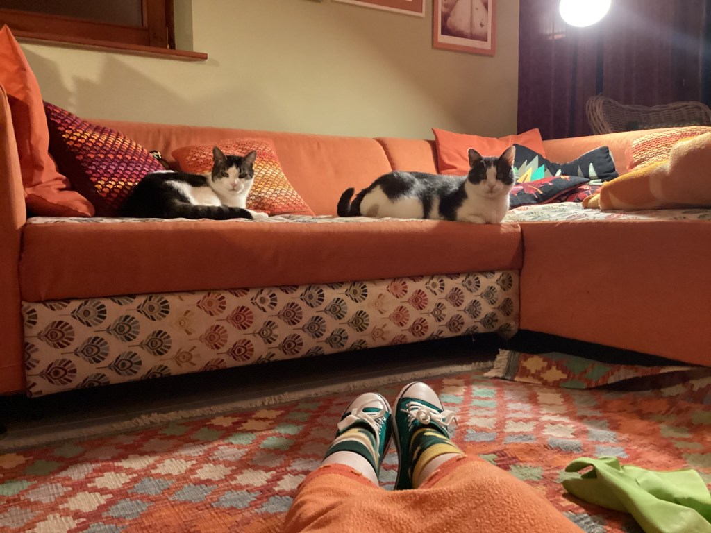 Ha kevésbé viszolyognék a szfinxmacskáktól, és kevésbé vonzódnék a mentett, nagyszemű, fehércirmosszürke, extraszőrös keverékekhez, akkor nem kéne ilyenekkel szembesülnöm. Ez itt csak két párna, egy fotel, valamint a macskamászóka termése.