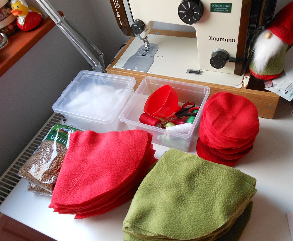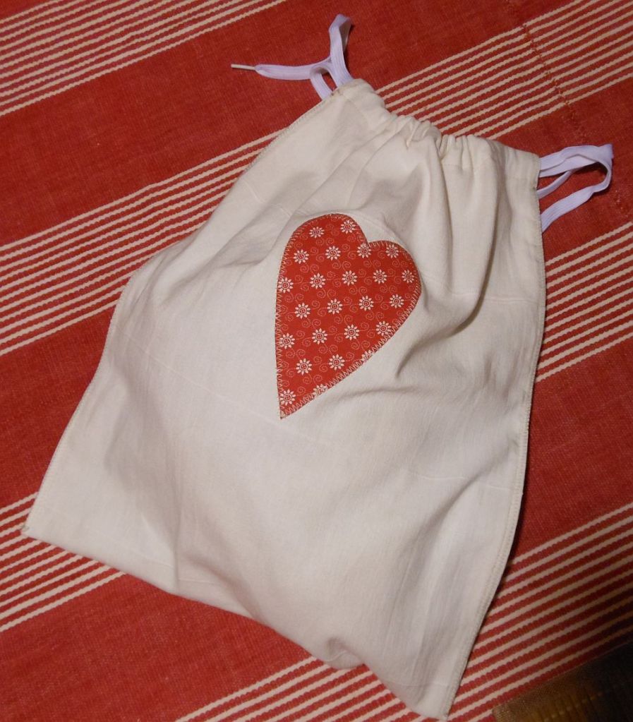 Amúgy ez mind az újracuccolás csodája, az anyag egy olyan ikeás függöny maradéka, amit anyósomnak kellett átszabnom, a szív anyaga pedig egy Laura baratinámnak készült ruhából maradt. (A szívecskére nyilván nem volt semmi fizikai szükség. Ezzel viszont lényegében mindent teljesítettem, ami Luca-napon tilos, hollárihó.)