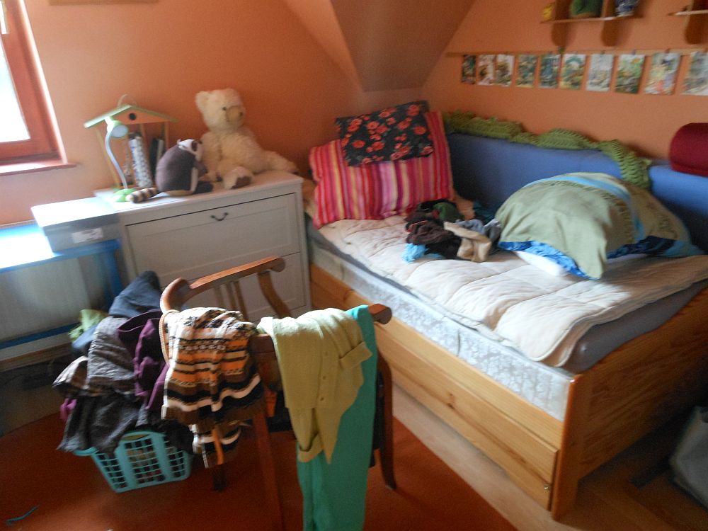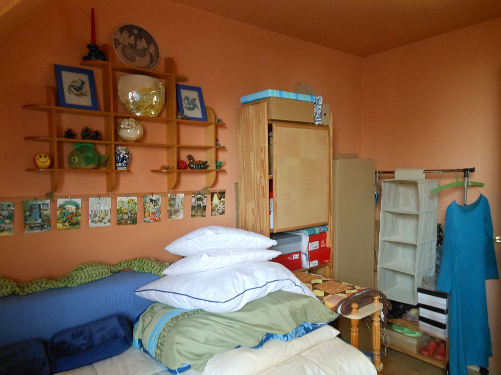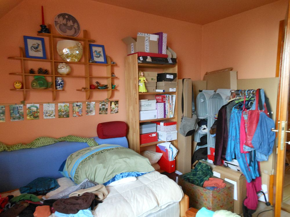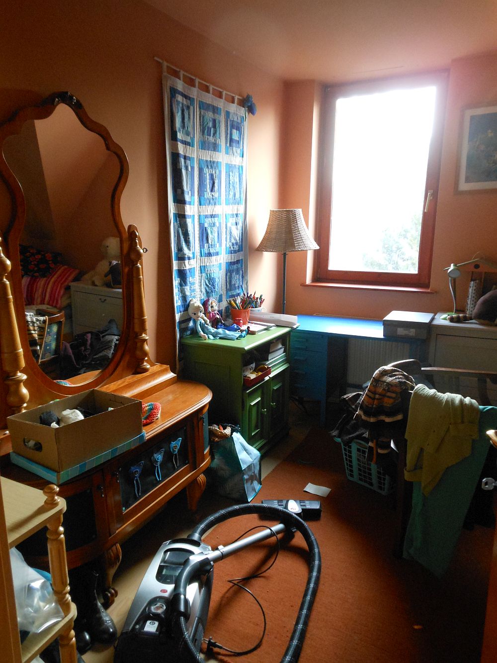 Por volt, káosz, macskaszőr, pókháló meg kupi, úgyhogy összeszedtem az ott fityegő holmikat, aztán kitakarítottam, és most ilyen. Holnapra ki is dekkolom. 🙂
