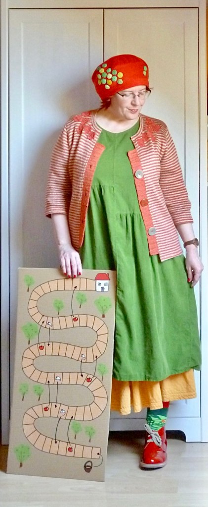 Ezt a száznyolcvanplusz magas nőkre tervezett izét én már évekkel ezelőtt turkáltam, de mindig úgy gondoltam rá, mint arra a holmira, amit majd át kell alakítani, mert elálldogálni vagy -üldögélni kiválóan tudok benne, haladni viszont nemigen. Ez azóta sem változott, mivel én nem nőttem nagyobbra, legfeljebb keresztben, haha. A nehézség nyilván abban áll, hogy a bordűrös anyagot a vízimadarak miatt nem lehet egyszerűen alulról nyissz, felülről kell vele csinálni valamit, és erre bennem még mindig nem nőtt meg a késztetés.