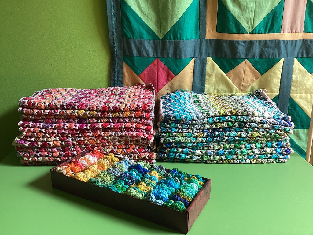 Remélem, legalább nyomokban vicces ez az egész, mert ha nem, megette a fene. No de hogy valami pofásat is mutassak, nesztek az itthonról vitt horgolófonalak kicsiny csomagja, mielőtt behajintottam volna a hobbiszatyromba.