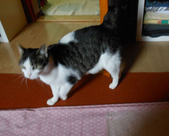 Épp ma egy éve, hogy délutáni álmomból a Repülő Kutató azzal ébresztett: “Drágám, találtam egy macskát a teraszon, most a mosókonyhában van”. Az első feladat az volt, hogy leellenőrizzem, mennyire az ő vagy az én fantáziám terméke ez az egész.* Természetesen ez a macska ezúttal igazi volt, ott ácsorgott a mosókonyhában, dorombolt, a fülén egy a mosógép mögül rákerült pösz, és én már akkor sejtettem, hogy a nyakunkon marad.